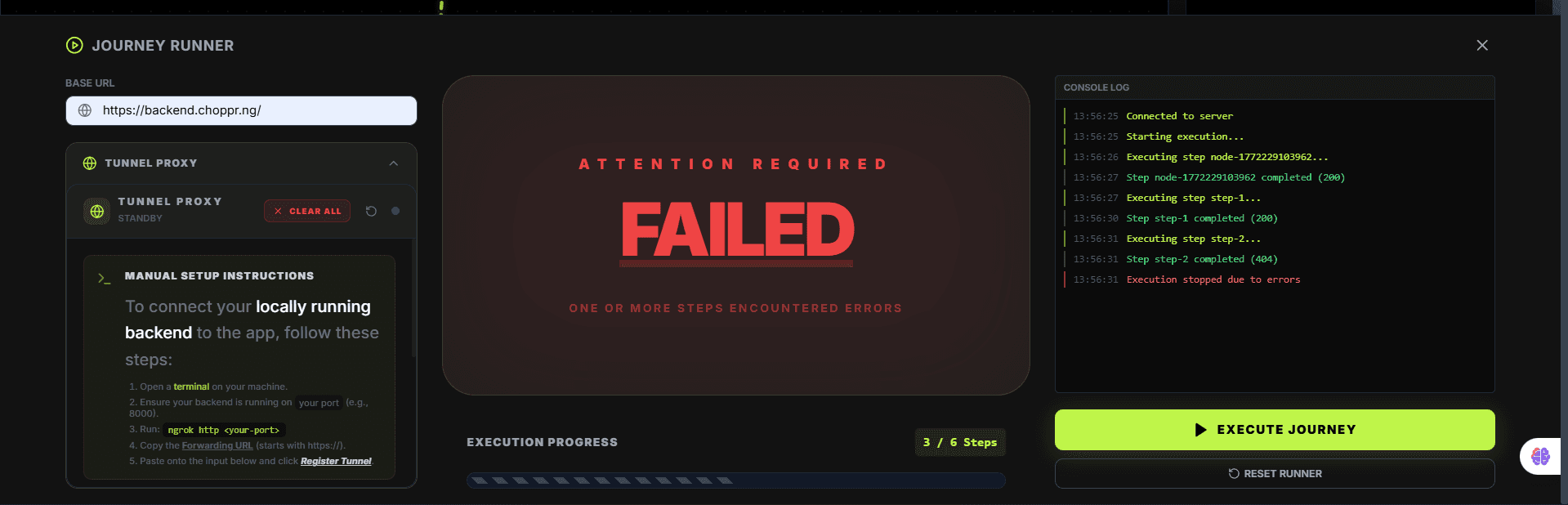 Deliver a fast, context-aware API testing platform that converts OpenAPI specs into visual, executable user-journey tests so teams can go from spec to working tests in minutes. The aim is to provide SpecFlow with automatic mock-data generation, seamless auth/session handling, and real-time request/response visibility so backend, QA, and frontend teams can validate workflows without manual wiring.