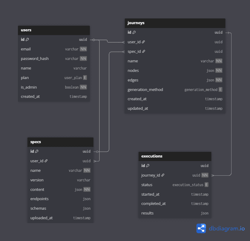 SpecFlow is a context-aware API testing platform that automatically transforms OpenAPI specifications into interactive, visual user journey workflows. It bridges the gap between isolated endpoint testing and real-world API usage by understanding how endpoints relate to each other and executing them in meaningful sequences.