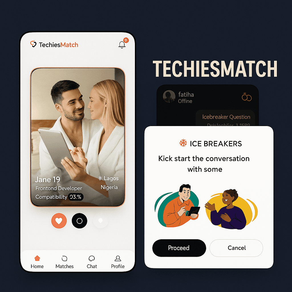 TechiesMatch is a specialized dating and networking app designed exclusively for tech professionals in Nigeria. Unlike generic dating apps that focus on superficial traits, TechiesMatch connects users based on their technical skills, professional backgrounds, and shared interests in technology.